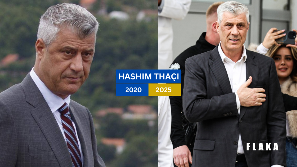 Ajo që ra në sy ishte pamje e tij fizike. Rrudha të shtuara në ballë, zbehje e fytyrës dhe ca vite ngarkesë mbi supe, dëshuman se sa ka ndryshuar ish presidenti Thaçi për këto pesë vite sa qëndron në paraburgim në Hagë ku po akuzohet për krime lufte nga Gjykata Speciale.