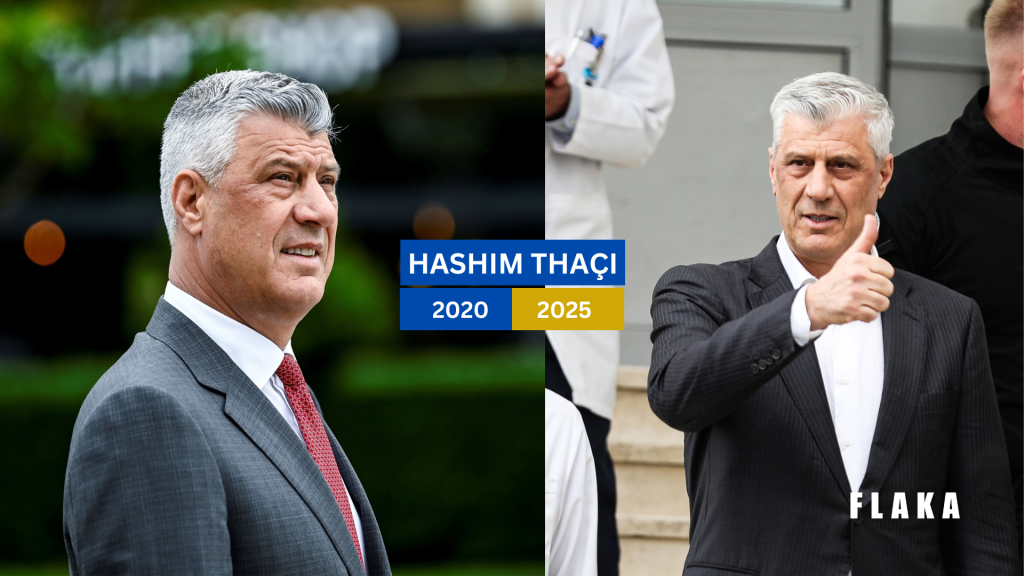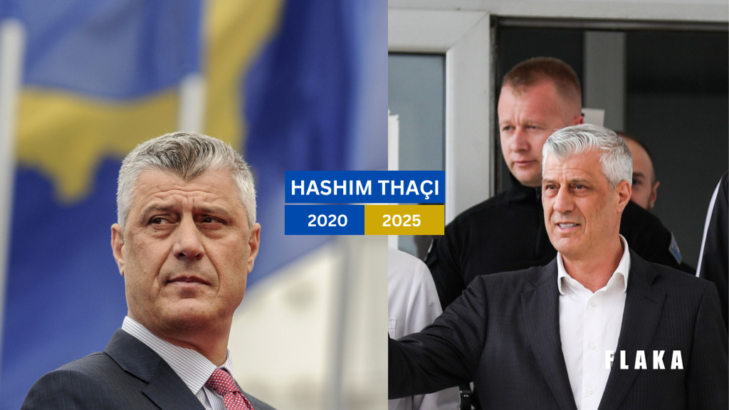 Ish Presidenti i Kosovës, Hashim Thaçi, në Korrik të vitit 2020 udhëtojë për në Hagëë me ftesë të Prokurorisë Speciale. Thaçi, Veseli dhe luftarët e tjerë po akuzohen për më shumë se 100 vrasje të paligjshme gjatë luftës në Kosovë. Procesi gjyqësor ndaj tij po vijon edhe pas pesë vite, përsa kohë po qëndron në paraburgim.