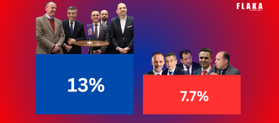 Në anketën parafundit, e realizuar po nga të njëjtët bartës, VLEN gëzonte mbështetje prej 13%, ndërsa në anketën aktuale kjo mbështetje ka rënë në 7.7% – një rënie prej 5.3 përqind. Ky ndryshim përfaqëson një goditje serioze për bllokun që dikur pretendonte të përfaqësonte alternativën kryesore shqiptare në opozitë.