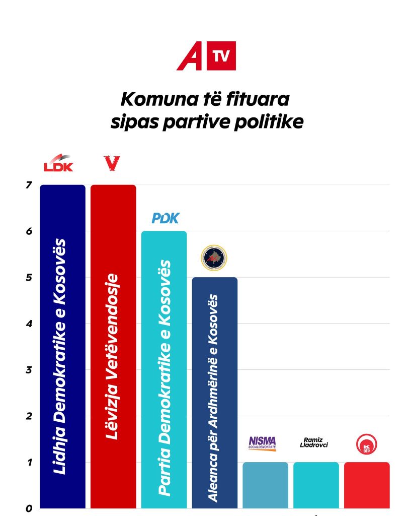 🔹 LDK ka arritur të rikthehet si forca e parë në nivel lokal, duke fituar komuna kyçe si Prishtina, Peja, Vushtrria dhe Viti.