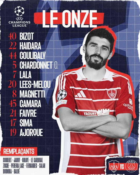 Janë publikuar formacionet zyrtare të ndeshjes Brest – PSG, në kuadër të Ligës së Kampionëve.