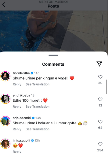 Ndërkohë të shumta kanë qenë edhe komentet, por vëmendjen e mori ai i Ilnisa Agollit. Partnerja e Meritonit ka lënë në koment dy emoji zemre.
