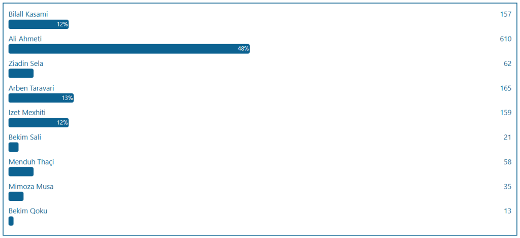 - Ali Ahmeti – 610 vota (47.62%)